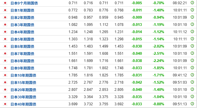 从日本方向来看,今天早上,日本国债收益率终于开始转跌,这也意味着日本国债短线企稳。