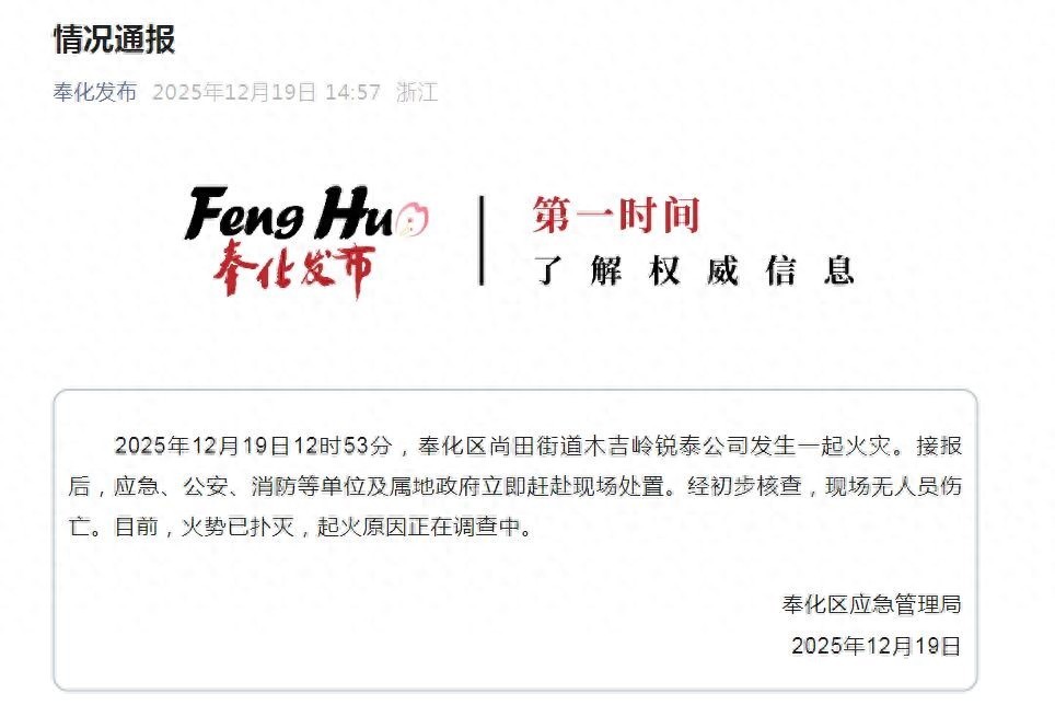 2025年12月19日配资论坛门户12时53分,奉化区尚田街道木吉岭锐泰公司发生一起火灾。接报后,应急、公安、消防等单位及属地政府立即赶赴现场处置。经初步核查,现场无人员伤亡。目前,火势已扑灭,起火原因正在调查中。