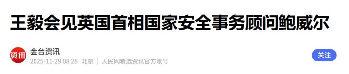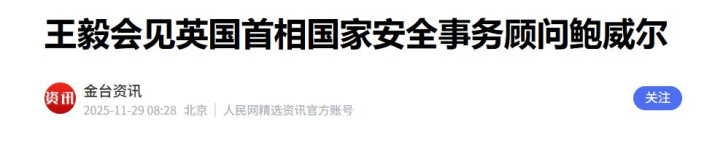 《王毅会见英国首相国家安全事务顾问鲍威尔》金台资讯2025-11-29 08:28